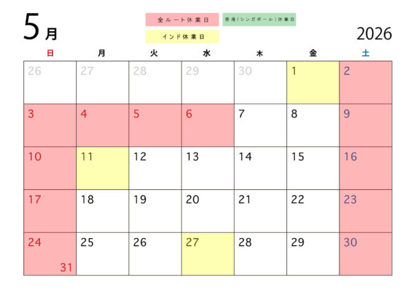 2026年5月の休業日程